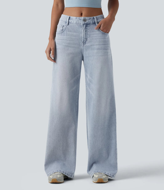 Lounge Flexâ„¢ Mid Rise Washed Baggy Wide Leg Casual Jeans with Pockets